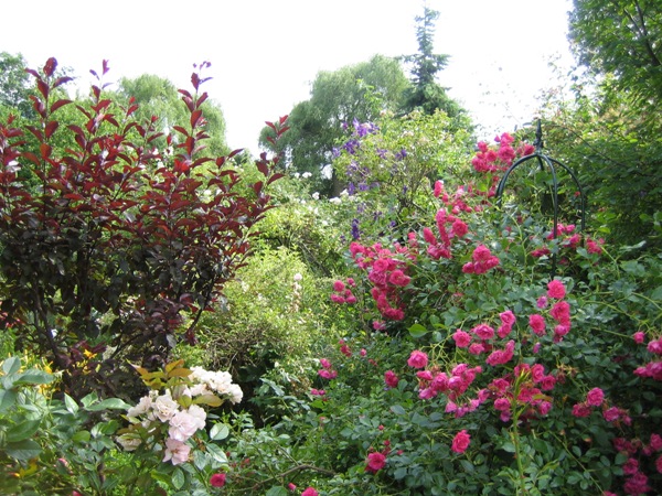 Unter solchen Voraussetzungen können Sie sich mit der Pflege noch so viel Mühe geben und noch mehr Zeit aufwenden – Sie werden auf lange Sicht nur mageren Erfolg haben. Lassen Sie sich daher beim Pflanzenkauf unbedingt hinsichtlich der Standort- und Pflegeansprüche sowie der voraussichtlichen Endgröße der gewünschten Pflanze beraten und überlegen Sie vor der Pflanzung genau, in welchen Bereichen ihres Gartens diese Anforderungen erfüllt werden. Vor gut zwei Jahren habe ich eine Kundin beraten, deren Garten von der Bezeichnung „Wohlfühloase“ meilenweit entfernt war. Dürftig blühende Pflanzen „mickerten“ entlang einer überdimensionierten Rasenfläche auf kärglichem Boden trotz aufwändiger Pflege vor sich hin und der Garten machte ihr überhaupt keinen Spaß mehr. Auf meine Frage, ob sie keine Rosen mag (weil in ihrem Garten keine zu finden waren), antwortete sie, sie mag sie schon, aber sie verzichte darauf, weil sie voll berufstätig sei und deshalb keine Zeit für die aufwändige Rosenpflege habe. Sicher, im Hinblick auf die früher üblichen Beete mit empfindlichen Edelrosen in Monokultur, die nur mit erheblichem Pflanzenschutzmitteleinsatz und viel Pflege gut aussahen, hatte sie schon recht…. Heute hat sie ihre Meinung korrigiert, weil sie mittlerweile im eigenen Garten gesehen hat, dass es auch sehr attraktive absolut pflegeleichte Rosen gibt, die überhaupt nicht „zickig“ sind, unermüdlich bis in den Spätherbst blühen und in Kombination mit Stauden und Gräsern einfach toll aussehen. Es gibt keinen Zierstrauch, der bei minimalem Pflegeaufwand länger blüht als eine öfter blühende Kleinstrauchrose.